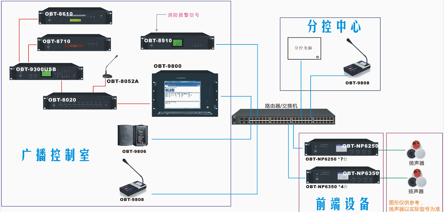 1、公共廣播系統(tǒng)按照數(shù)字廣播系統(tǒng)方式進(jìn)行設(shè)置;廣播系統(tǒng)按照樓層和功能劃分多個(gè)廣播回路(分區(qū))。每個(gè)區(qū)域可獨(dú)立控制,也可進(jìn)行全區(qū)域廣播(播放背景音樂(lè)+語(yǔ)音通知);