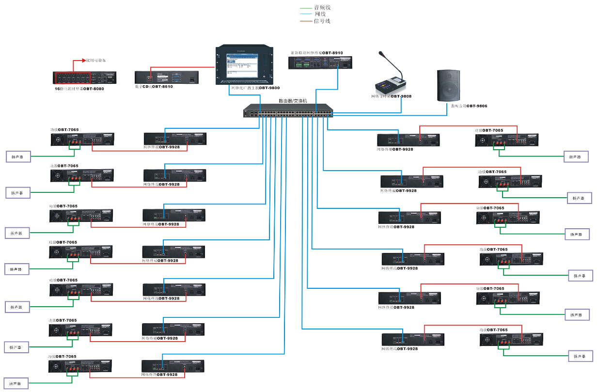 1)具備有分散式和集中式管理模式,分散式是在學校4個校區,每個廣播區域(教學走廊、室外走道、宿舍走廊、戶外運動場、學生食堂、校園周邊環境帶等區域)設置網絡音頻終端,滿足各個教室、各個區域可以進行獨立廣播和控制;集中式是在學校總廣播站設置系統服務器、及各分控站,利用學校網絡,把各個區域廣播音頻終端、網絡尋呼站和分控軟件操作系統連接起來,組成一套數字化網絡廣播系統,進行統一管理;
